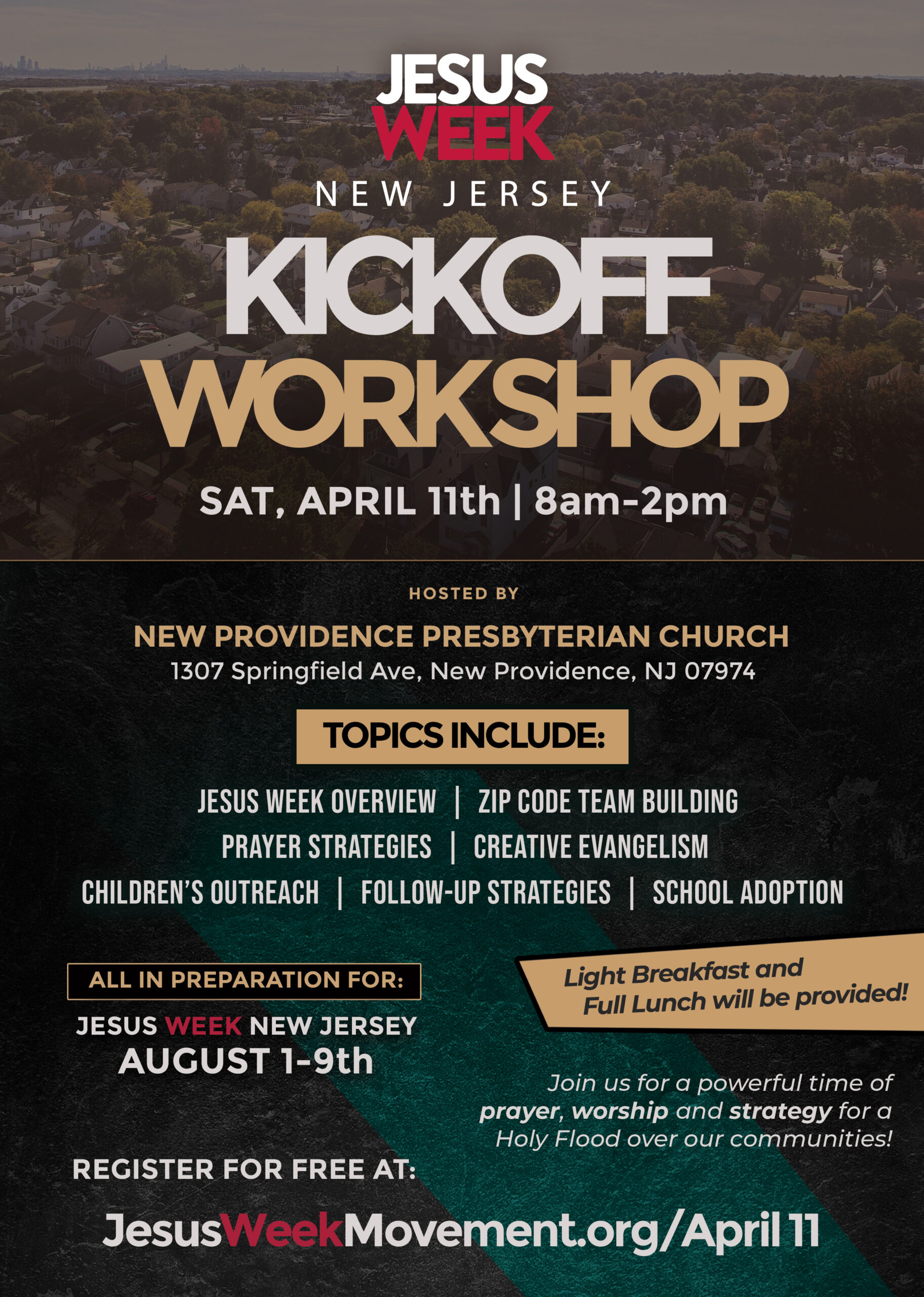 The Jesus Week New Jersey Movement, Zip Code Team Building, Prayer Strategies, Creative Evangelism, Children’s Outreach, Follow-up Strategies, School Adoption, and so much more.